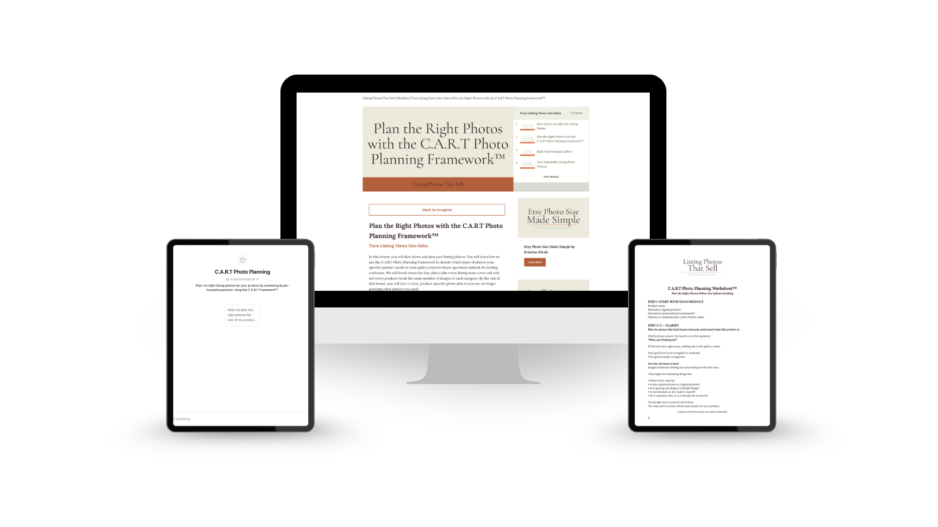 It’s built from the same buyer psychology and planning process I use with makers privately, so deciding what photos to include and how to organize them stops feeling confusing or random.